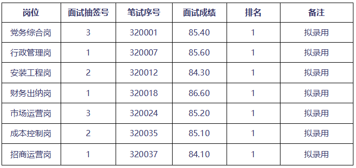具體擬錄用人員公示名單見下表:
