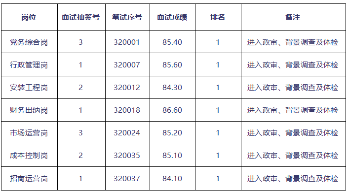面試成績(jī)公布